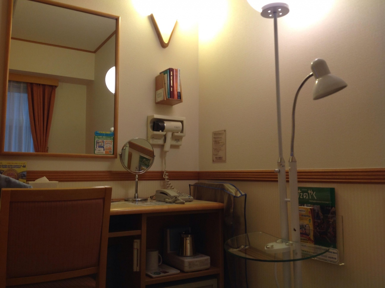 細かい気配りが心憎い。置き鏡があり、女性には嬉しいのでは。
