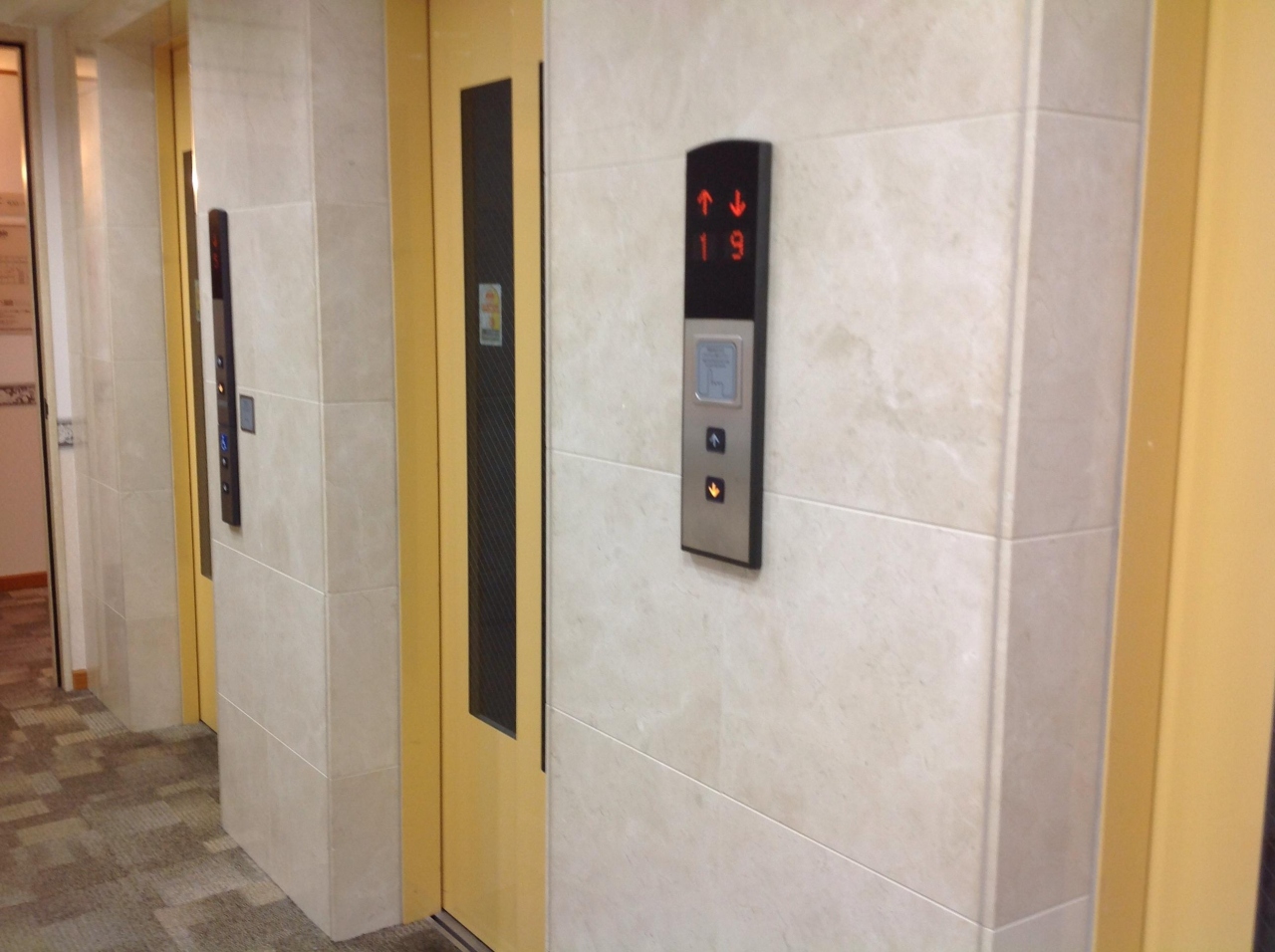 エレベーターが3基。待つこともなく乗車。部屋の中も狭かったけど綺麗で出張なら十分。