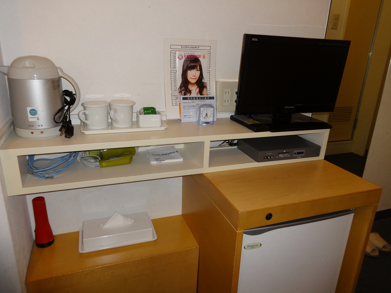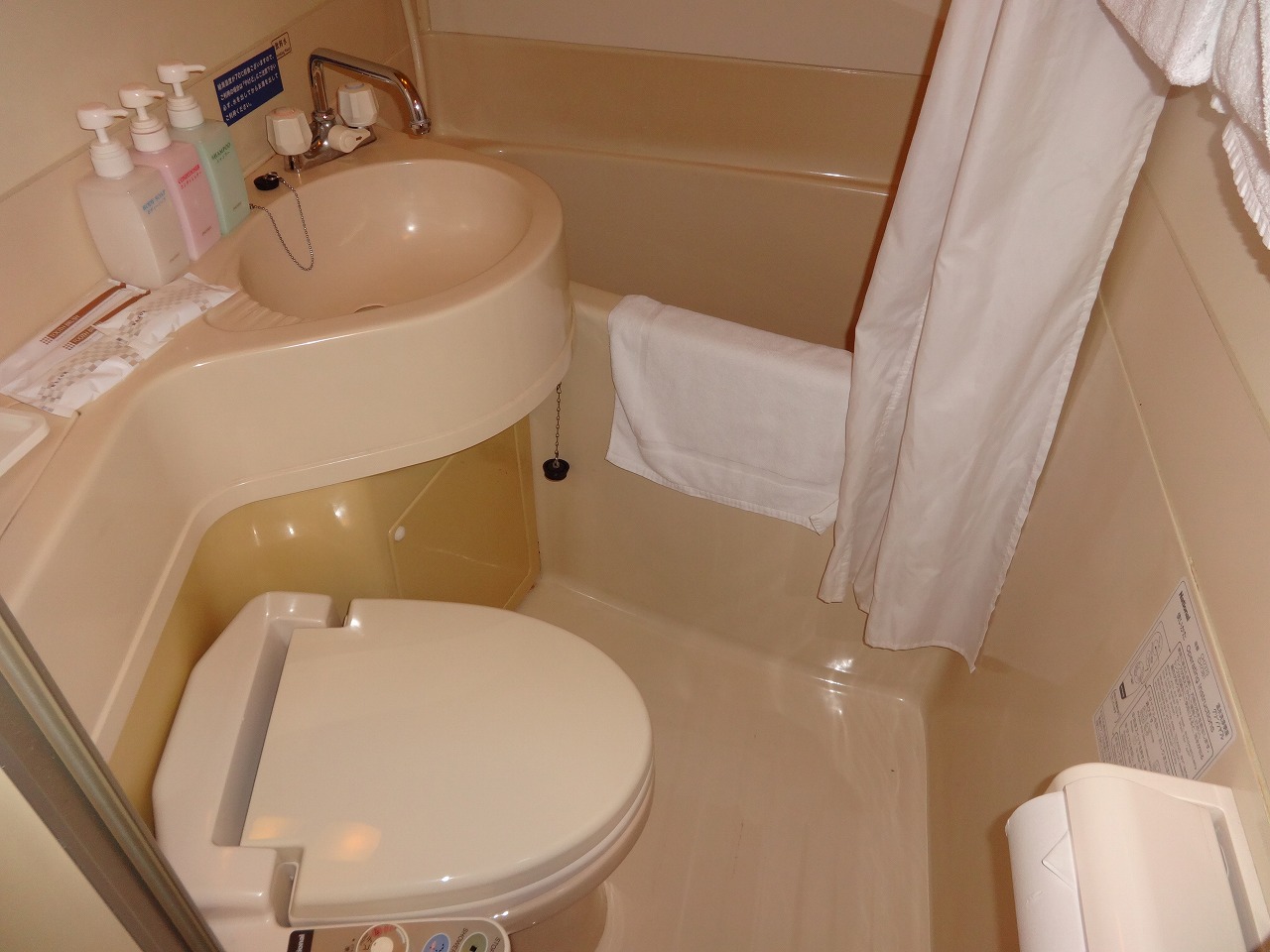 ベッドは、120cm幅と広く、室内は、コンセントが4か所あってかなり便利でした。