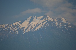 翌朝はこの季節ならではの北アルプスの隠し絵「雪形」の解説も実地でしてもらえた。
