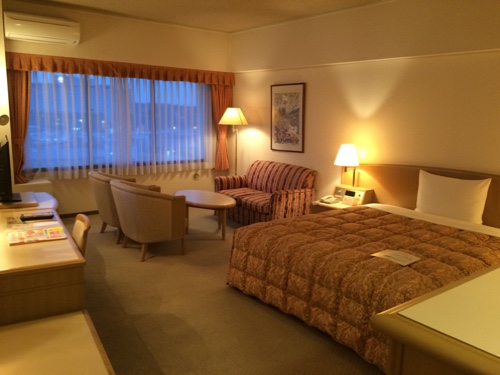 リゾートホテルのツインルームみたいな広さで、4人が座れるソファ&テーブルやカウンターまでありました。