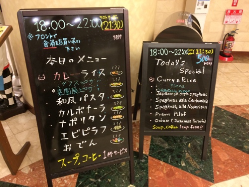 ホテルの周りはあまり飲食店がないからか、ホテルの1階で夕食(軽食)が500円で提供されていました。