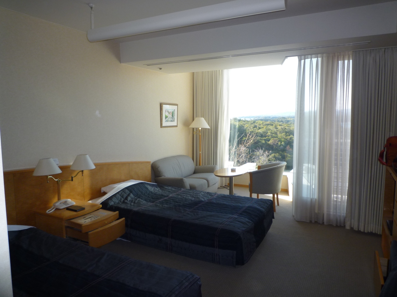 窓が大きく、部屋からの眺めも良かったです。バルコニーはありませんが。明るい時間に到着して、景色を眺めたり、宿の周りの遊歩道を散策することをおすすめします。部屋も広めで快適で、ホテルも新しく清潔で、温泉もあって、料理もおいしいビュフェをいただけて、この値段で泊まれるなんて、とってもお得なホテルだと思います。来年のサミット開催地ということで、人気が出すぎて、泊まりにくくなってしまうのではないか心配です。