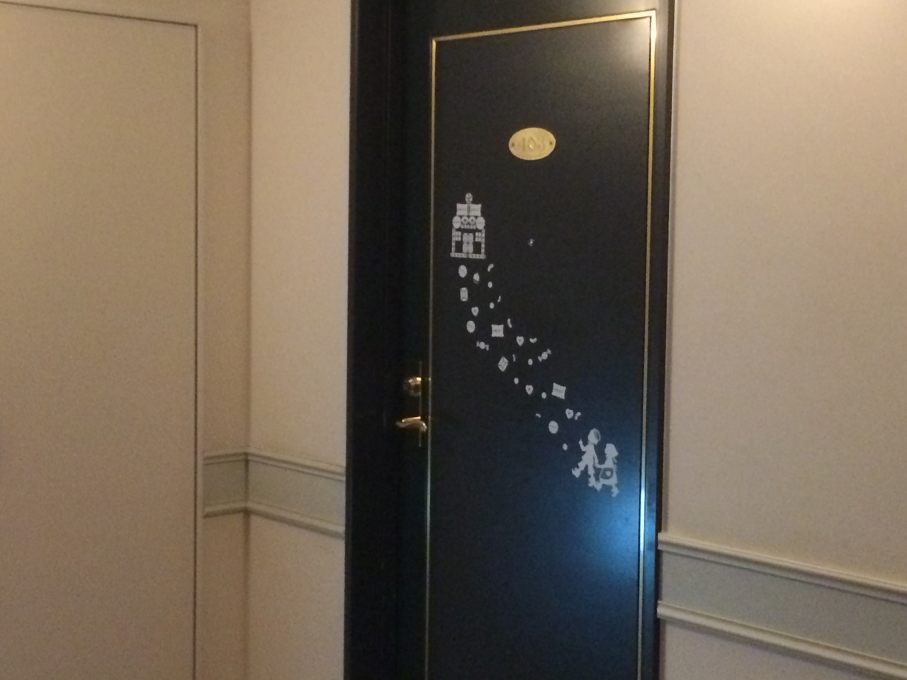 部屋は各階ごとに色分けされているようで、扉には童話のワンシーンが描かれています。