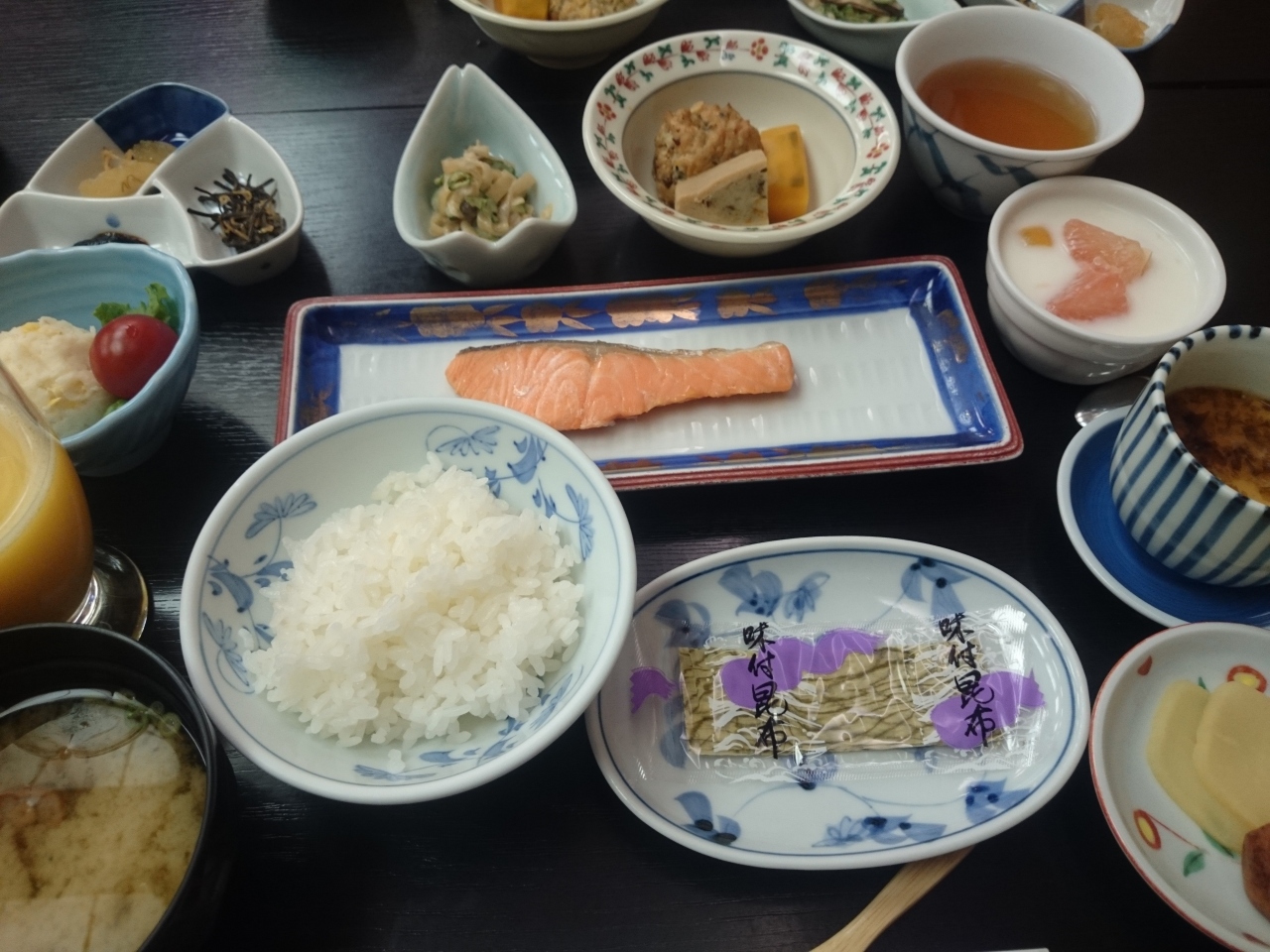 食事は団体で広間で頂きました。揚げ物などはきちんと揚げたて、豪華ではありませんがきちんとしたお料理を出してくれます。