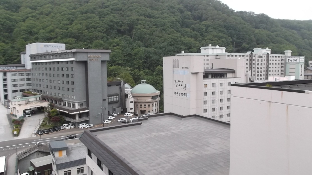 温泉大好きなおっさん2人旅の5日目、長万部より特急スーパー北斗3号で移動、駅前の路線バスで温泉街へ。荷物をフロントに預けて地獄谷巡り(徒歩15~20分。昼食を済ませ、午後3時頃チェックイン、まだ客が少ない時期に温泉入浴、「気持ちいい!」露天・内湯・サウナと一通りをこなし、部屋で寛ぐ。エアコンはあるが涼しくならない。帰路の空路ウェブチェックインしたくても使えるPCがホテルにはない。