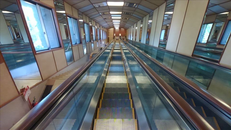 次に本館から山上館への連絡エスカレーターの規模と綺麗さにビックリ。