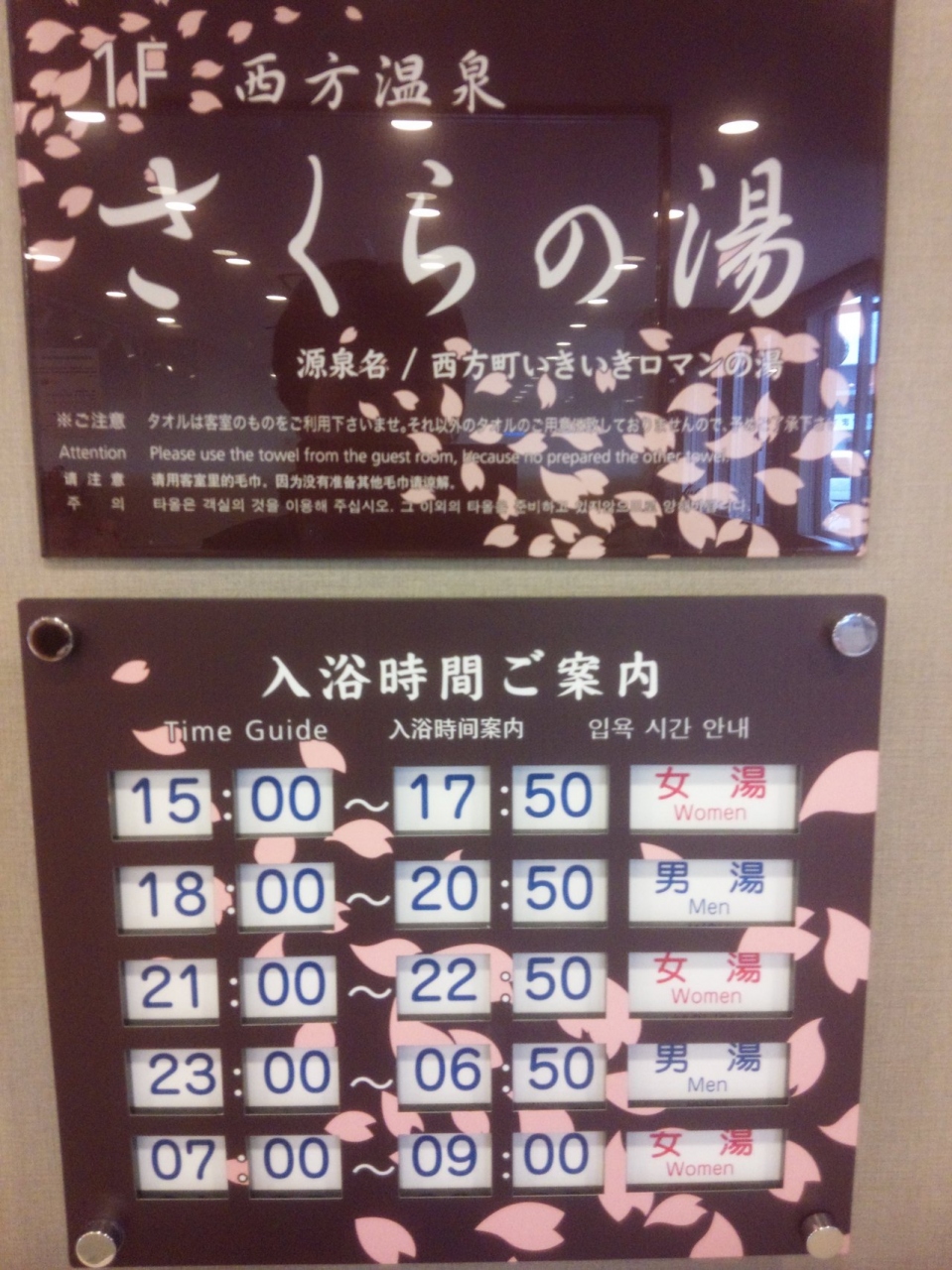 今回もさくらの湯は空いていましたが男女入れ替えの利用時間が変更になっていました
