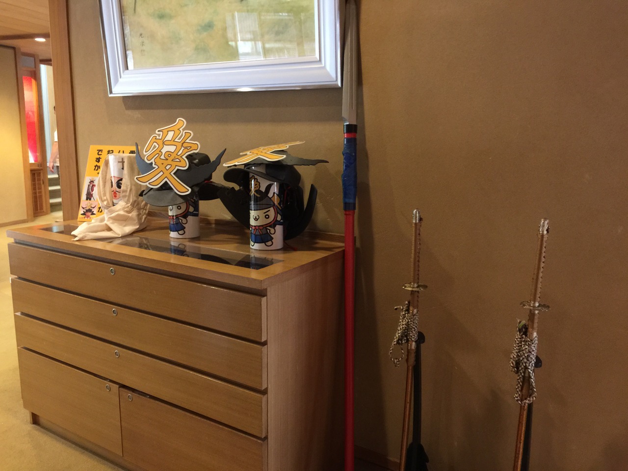 宿泊者にはフロントでチェックイン後、刀と手作り兜で写真撮影するサービスやお着き酒でのおもてなしがあるようです