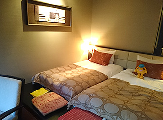 割り当てはツインルームでしたが、和モダン(公式には大正ロマンらしいw)な内装でなかなかおしゃれ&まずまずの広さで、満足度高かったです。