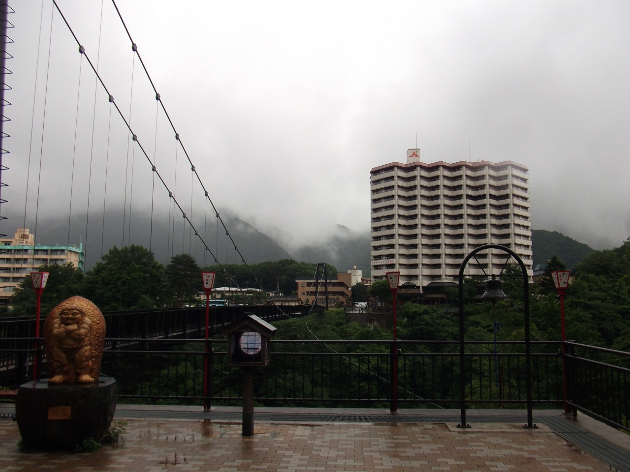 鬼怒川温泉の見どころのひとつである鬼怒楯岩大吊橋、縁結びの鐘が一望できる最上階