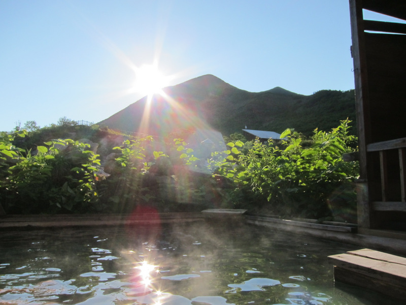 簡素ながら清潔な旅館に生まれ変わり、かっての秘湯感は薄れたものの、お湯の良さは健在です。宿泊したのは本館の方で二食付きのプランです。本館には大浴場とからまつの湯という二つのお風呂があり、それぞれ内湯と露天風呂があり、いずれも24時間入浴可です。大浴場は少し硫黄色がある湯で、からまつの湯は透明なお湯です。大浴場の露天風呂は眺望抜群で、朝早く入りましたが、正面の山から上がる朝日が眩しいくらいに差し込んで、宿泊客だけにしか味わえない至福の時間を満喫できます。