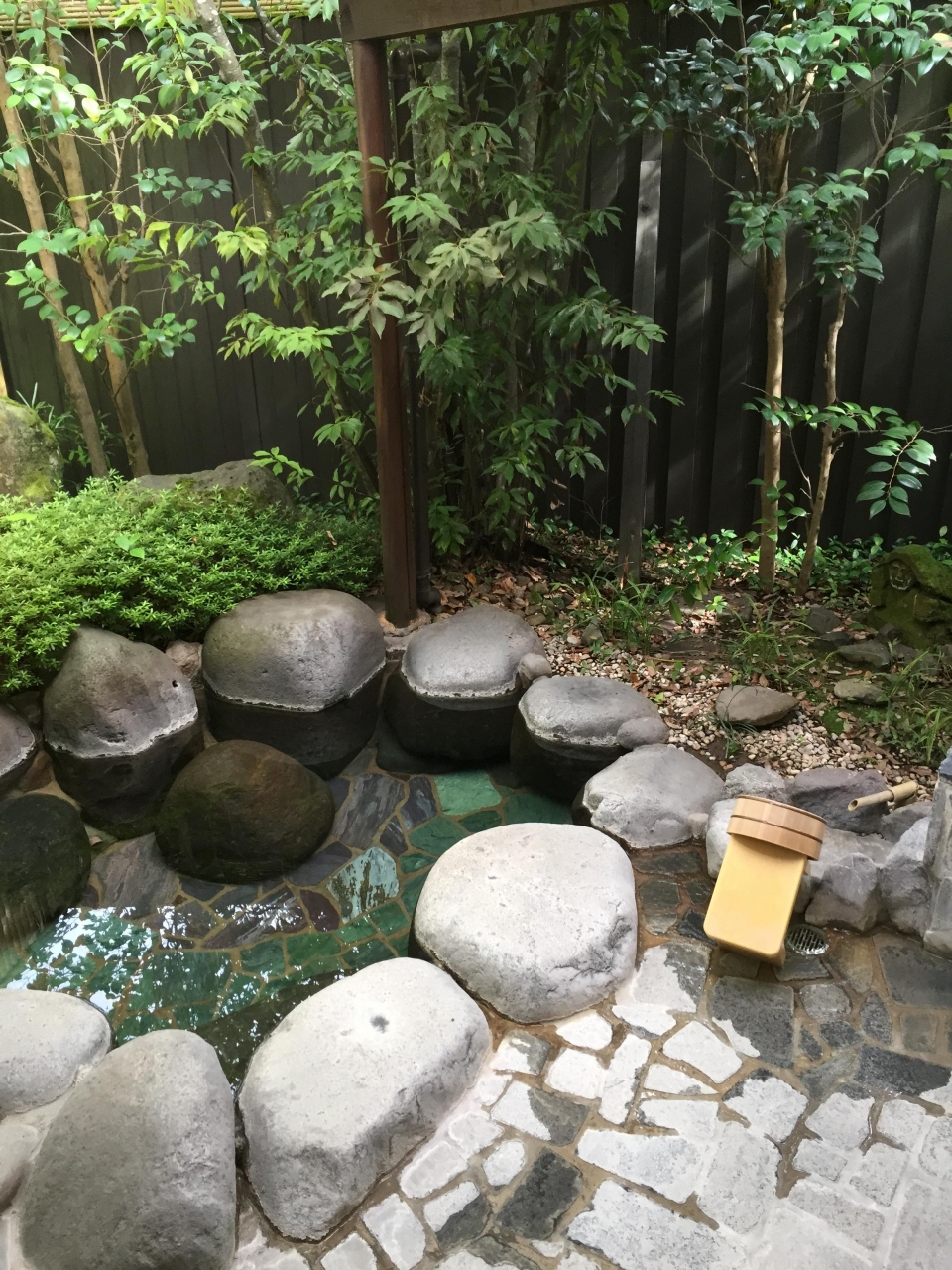 お部屋自体は普通でしたが、隣には、なんといっても、源泉掛け流しで家族一緒に入れる大きさの露天風呂が付いていて、妻ともども感動し、気持ちのいい汗を流すことができました。