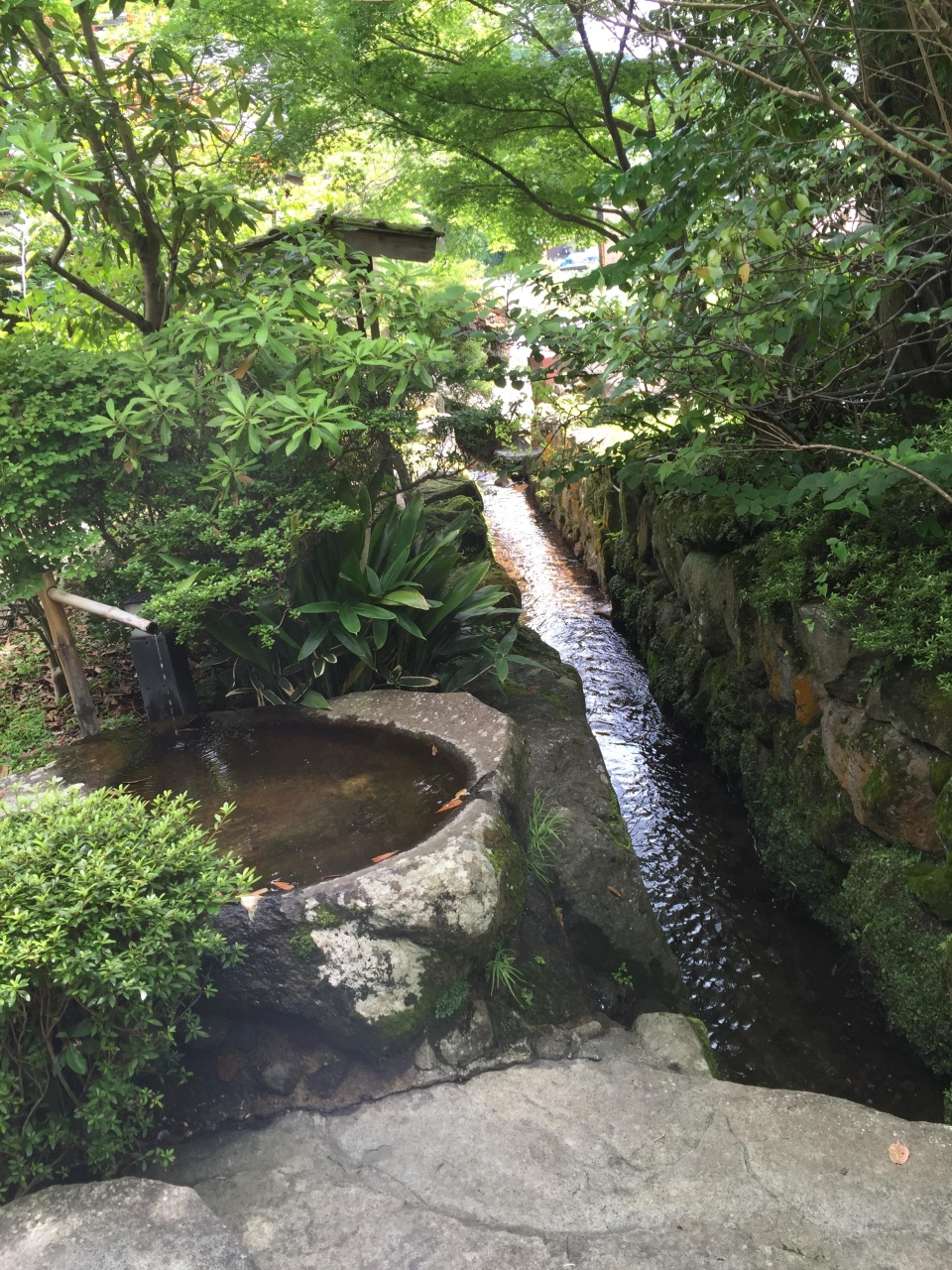 玄関脇に清流が流れていて、水の音が心地よい気持ちにさせてくれます。