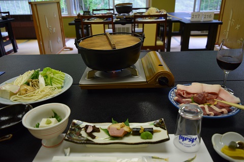 - 鴨、雉、猪肉、天女魚(アマゴ)、太麺、等々、鍋中心