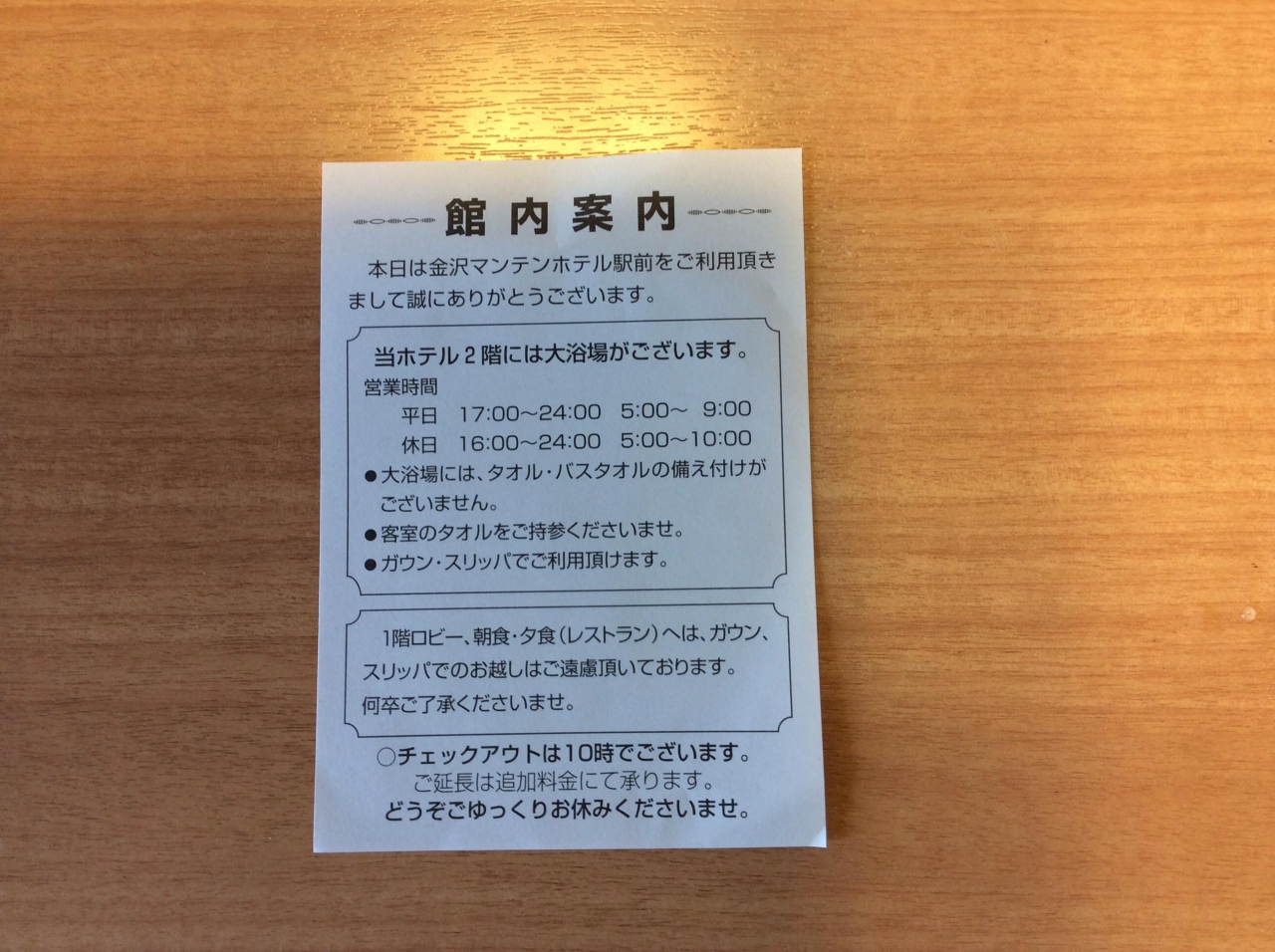 JR金沢駅から線路沿いを歩いて5分。金沢周辺では一番大きなホテルかもしれません。ホテルのウリは、大浴場。とても良かったです。しかし、ホテルの部屋数と比べると少し小ぶり。入浴時間が重なると混雑するのでは?私のときは、そんなでもありませんでしたが。
