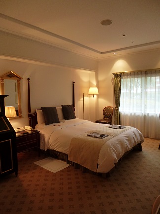 ガーデンウィングに宿泊しました。部屋からは庭園が見渡せました。スリッパは使い捨てのものが用意されていました。