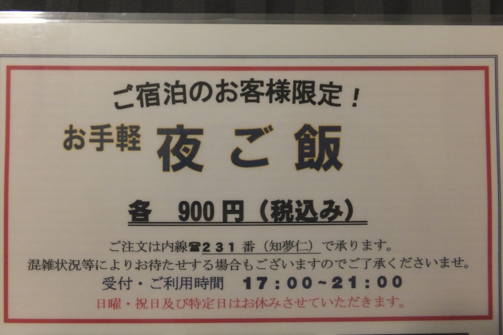 ルームサービスに「夜ご飯」メニューがある。 忙しいときに、外に出るのが面倒なときになどに、部屋食ができる。 これはいいサービスです。 高級なホテルでは、よくあるサービスですが、ビジネスクラスのホテルではなかなかないサービス。 部屋に、ACコンセントが5ヶ所あり、計9穴のACが使える。 これはすごい。 こんなに多いのは初めてだ。 一般的に、ホテルのACコンセントは少なく、不便を感じていたところ、これだけ穴があれば十分すぎるほどだ。