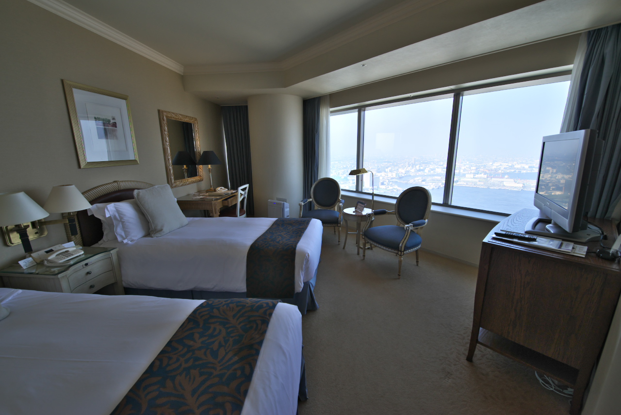 喫煙可・コーナーツイン・海側でリクエストし、当日は観覧車やベイブリッジなど横浜港が一望できる部屋に通されました。