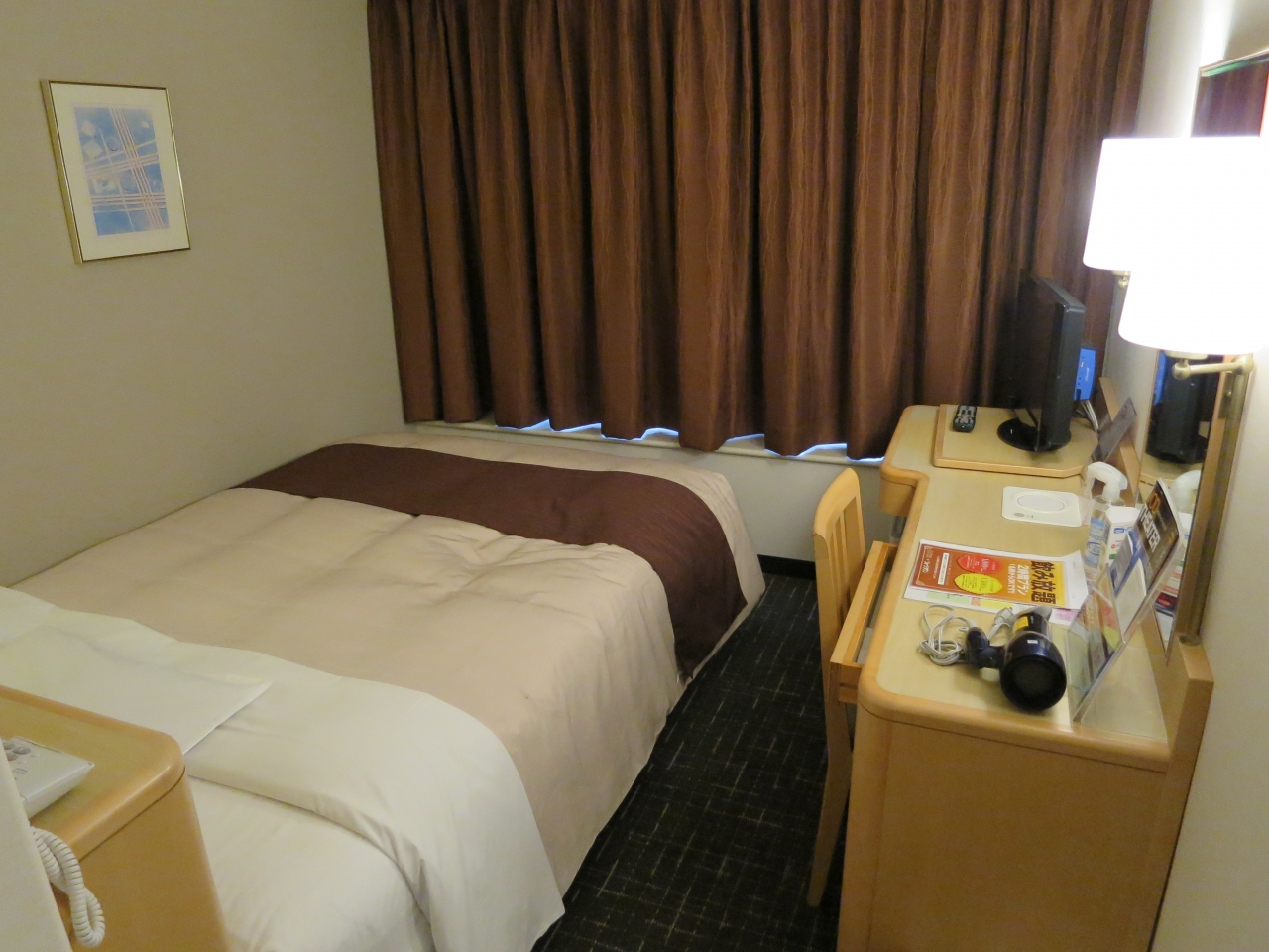 1階にはファストフード店などがありフロントまでが遠いです。また外国人団体旅行客が多くフロントは広くないので、運が悪いとチェックインにかなりの時間がかかりそうです。チェックアウトは自動チェックアウト機で素早く済ませられます。ベッドは広めですが部屋全体は狭く、特にバスルームは狭いです。