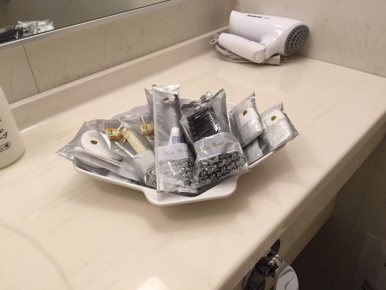 アメニティーも一通りありました。使い捨てスリッパや室内着もありましたが、お水はありませんでした。