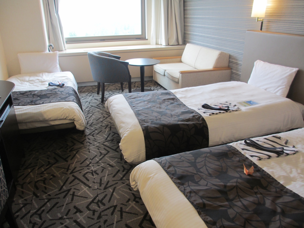 妙高高原ICを降り市街地を抜け、林の中を走ること30分ほどでホテルに到着します。どの部屋からも隣接したゴルフ場が見渡せます。部屋は3人用禁煙部屋でしたが清潔でエアコンもしっかり効いていました。朝食はバイキングで種類も多く満足いくものでした。夕食も和食、洋食、バイキングの中から選ぶことができ、味付けも薄めで、予想以上に工夫された食事でした。風呂の前には漫画が用意され貸し出しもされていました。夜はホテルの前で行われている妙高ハピネスイルミネーションをゆっくり見学でき、イベントとしては大変素晴らしかったです。他のホテルからも多くの人が観賞に来ていました。ただ一つチェックインする際の時間がかかりすぎるのは残念でした。何か工夫が必要のように多くの人が感じていました。