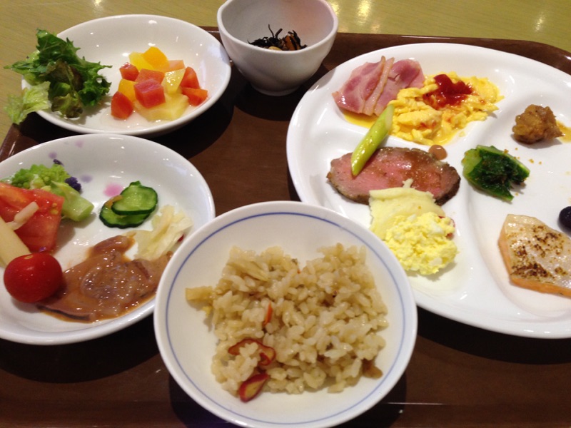 朝食バイキングのおかずの種類が非常に豊富で驚きました。苫小牧の名産のホッキ貝を使ったホッキ飯などもありました。