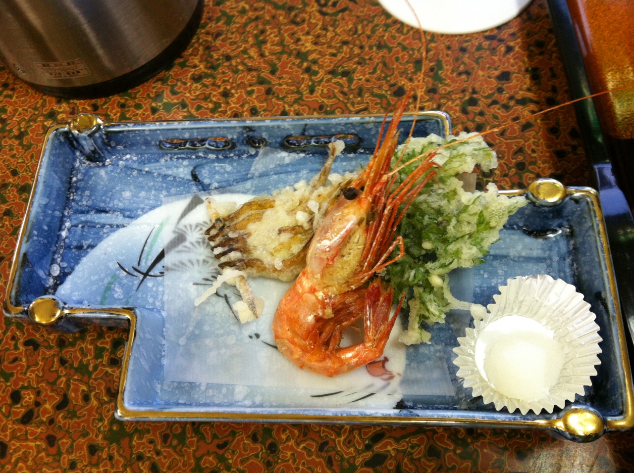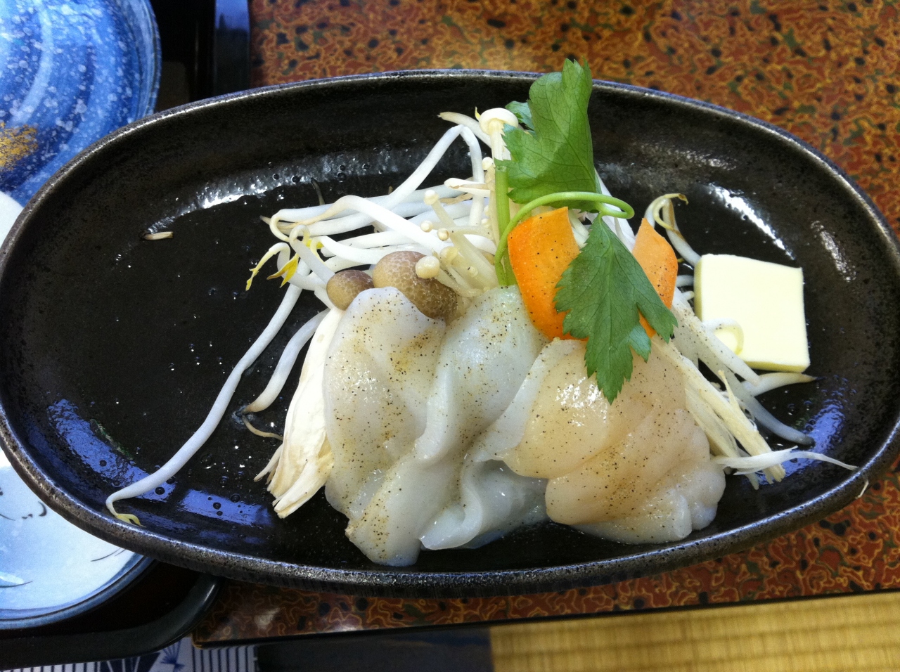 期待した夕食は大体評判通りです。海の幸をいっぱい出して料理の説明を丁寧にしてもらいました。うにの量がすごくて嬉しかった。ホタテとイカのバター焼きが大変美味しかったです。ズワイガニはシーズンではないかな、まあまあでした。天ぷらは揚げたてではなくもう冷たくなって残念でした。