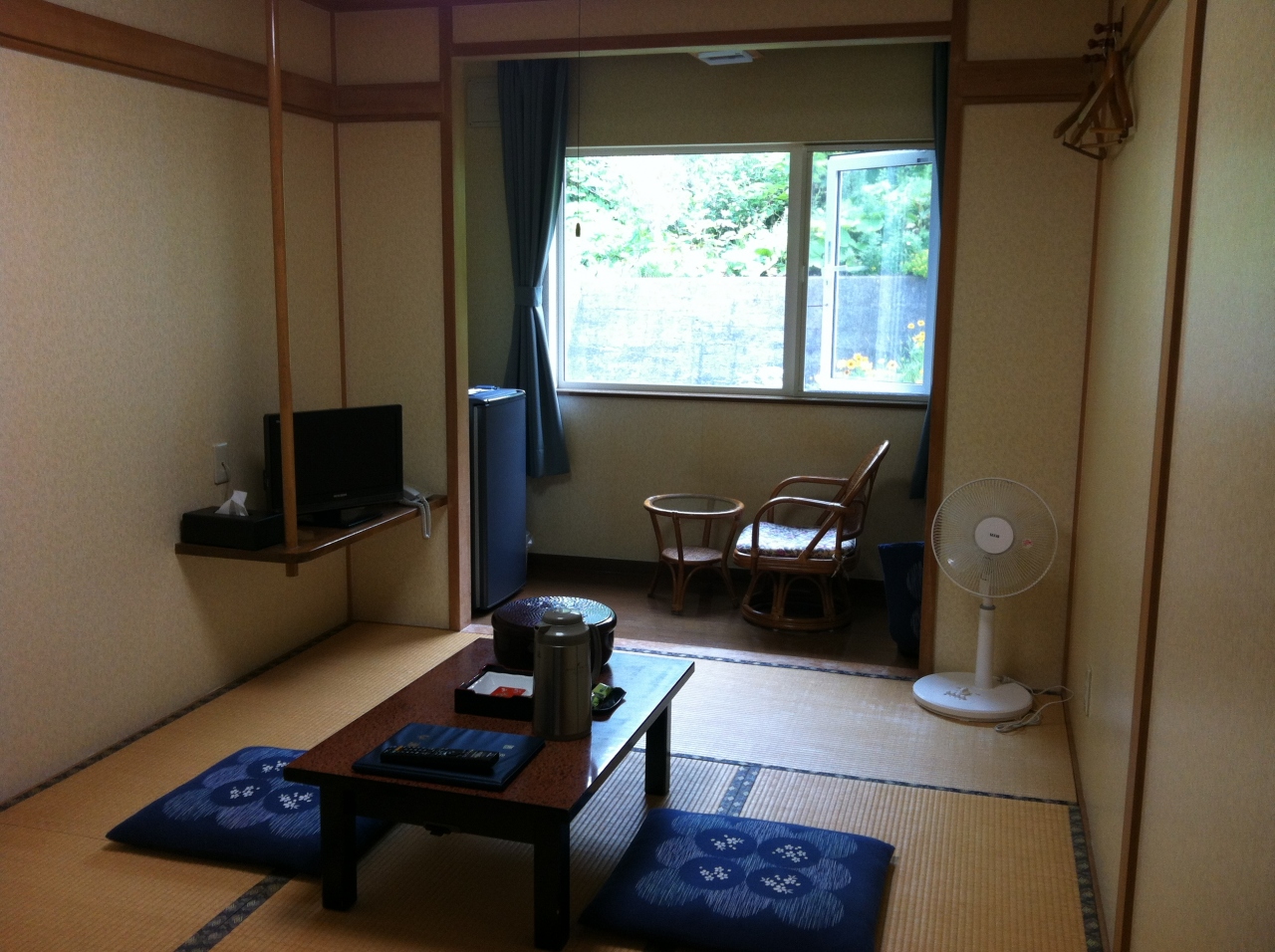 部屋は明るくてきれいです。冷房はなく、扇風機が用意してあります。