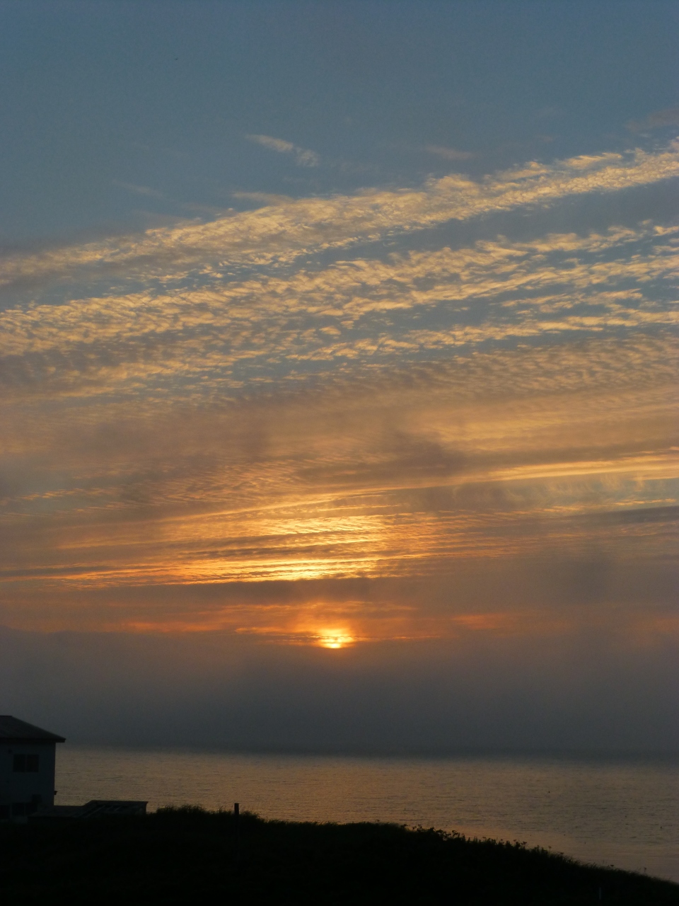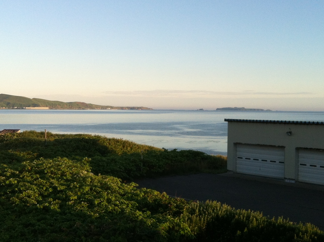 岬めぐりコースを歩いてから宿に戻った時、もう6時過ぎでした。夕食前にお風呂に入りたいので、夕食の時間を女将さんに調整して7時にしました。お風呂に入ってから部屋に戻って「あ!ちょうどサンセットだ、きれい!」と思ってすぐ何枚の写真も撮りました。気持ちよかったです。