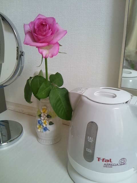 アメニティが充実しており、部屋に生花が一輪飾ってあるのも嬉しいです。