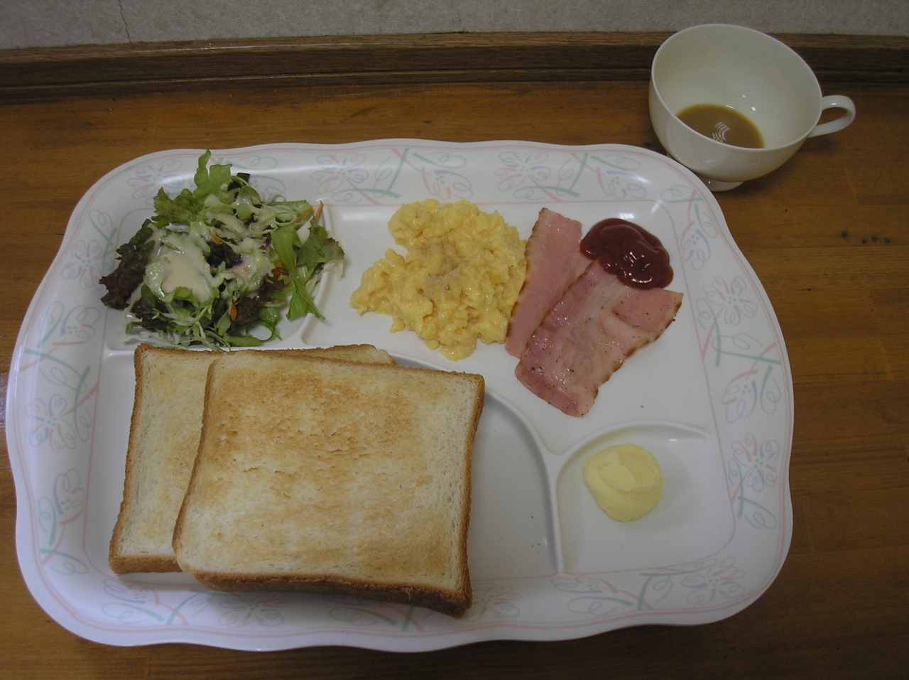 いました。ワンプレートの朝食ですが、丁度良い