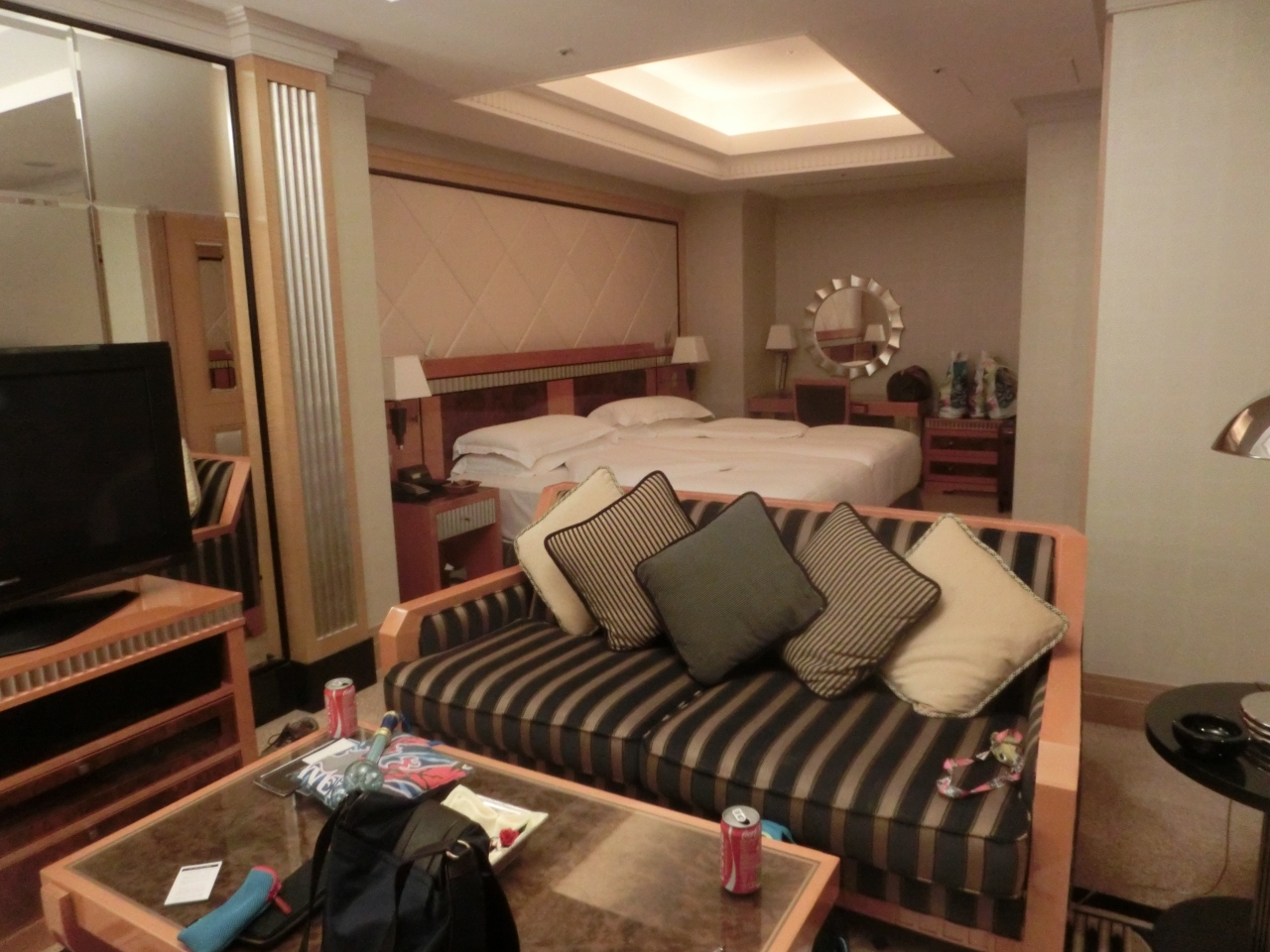 室料は1ルーム1泊37000円(消費税込)ほど。この時期面倒なのは、ホテル内ではレストランだけでなくどこでも、ハーフパンツやTシャツがダメとのこと。自動販売機などもホテル内にはありませんでした。