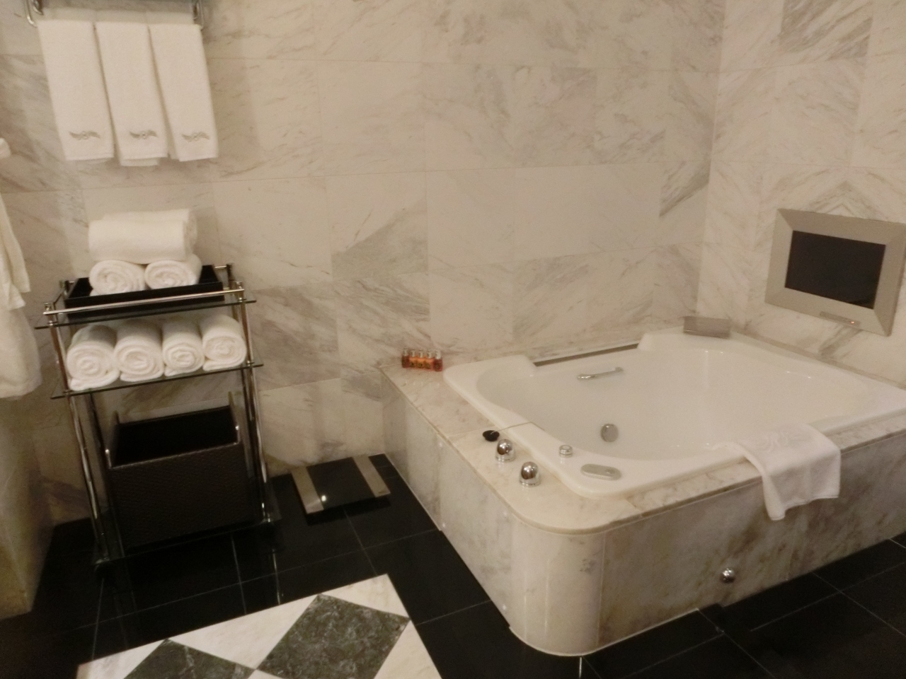 宿泊した部屋は、一番下のランクのベイスイートの和洋室タイプ。定員5名で、81平米ほどの広さがあります。ツーベットに和室というタイプで浴室もテレビの付いたとっても広くなっていました。アメニティーも充実していました。