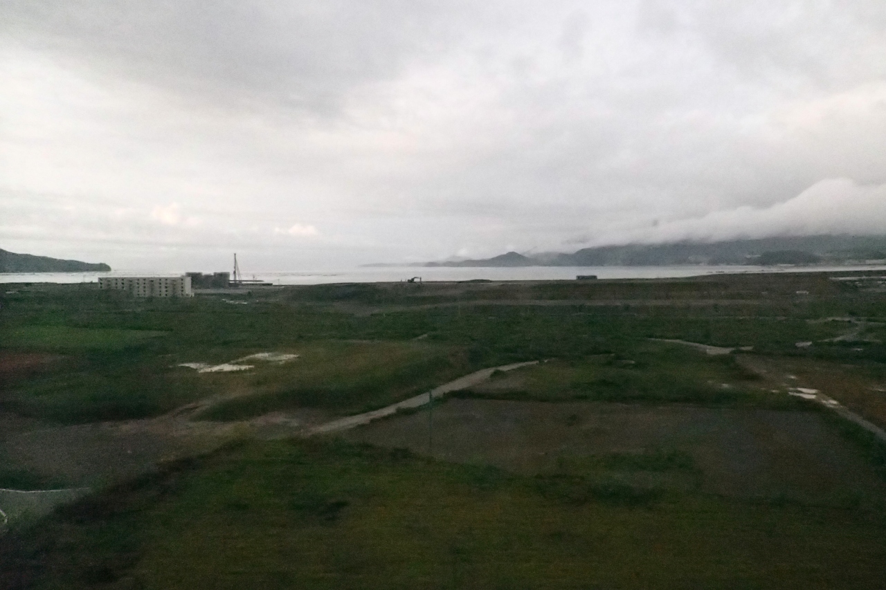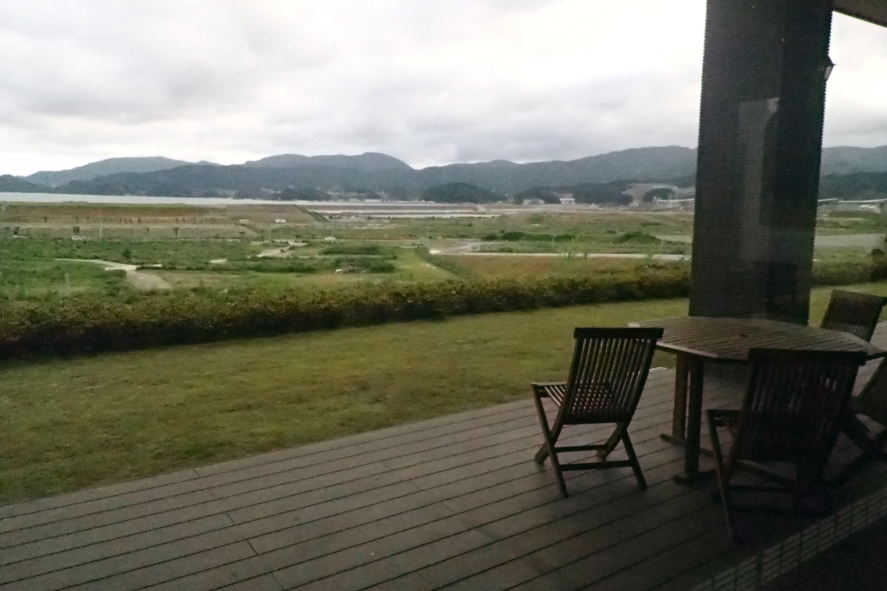 海を見下ろす高台に再建されたホテルです。陸前高田の旧市街地は、嵩上げ工事中のため何も立っていません。ホテルからは、そうした光景が一望できます。