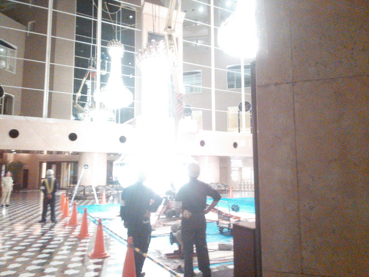 ・ロビーのシャンデリアの電球交換?