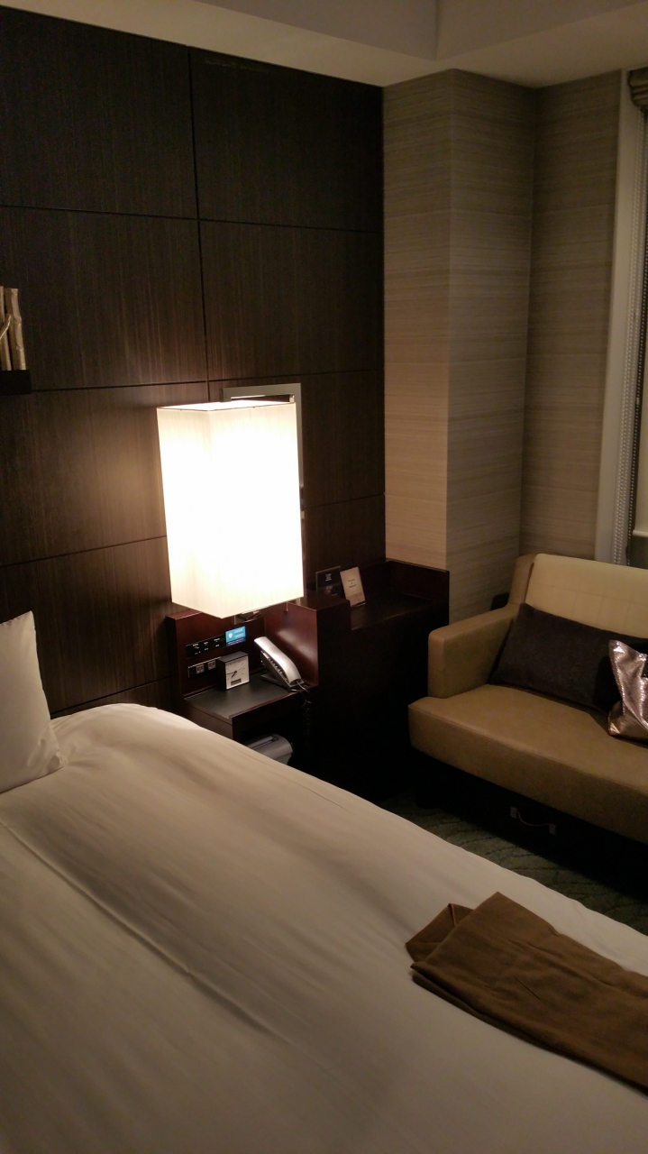 部屋は若干狭いですが、ベッドが広く、寝るのには快適です。マットの固さもよし。
