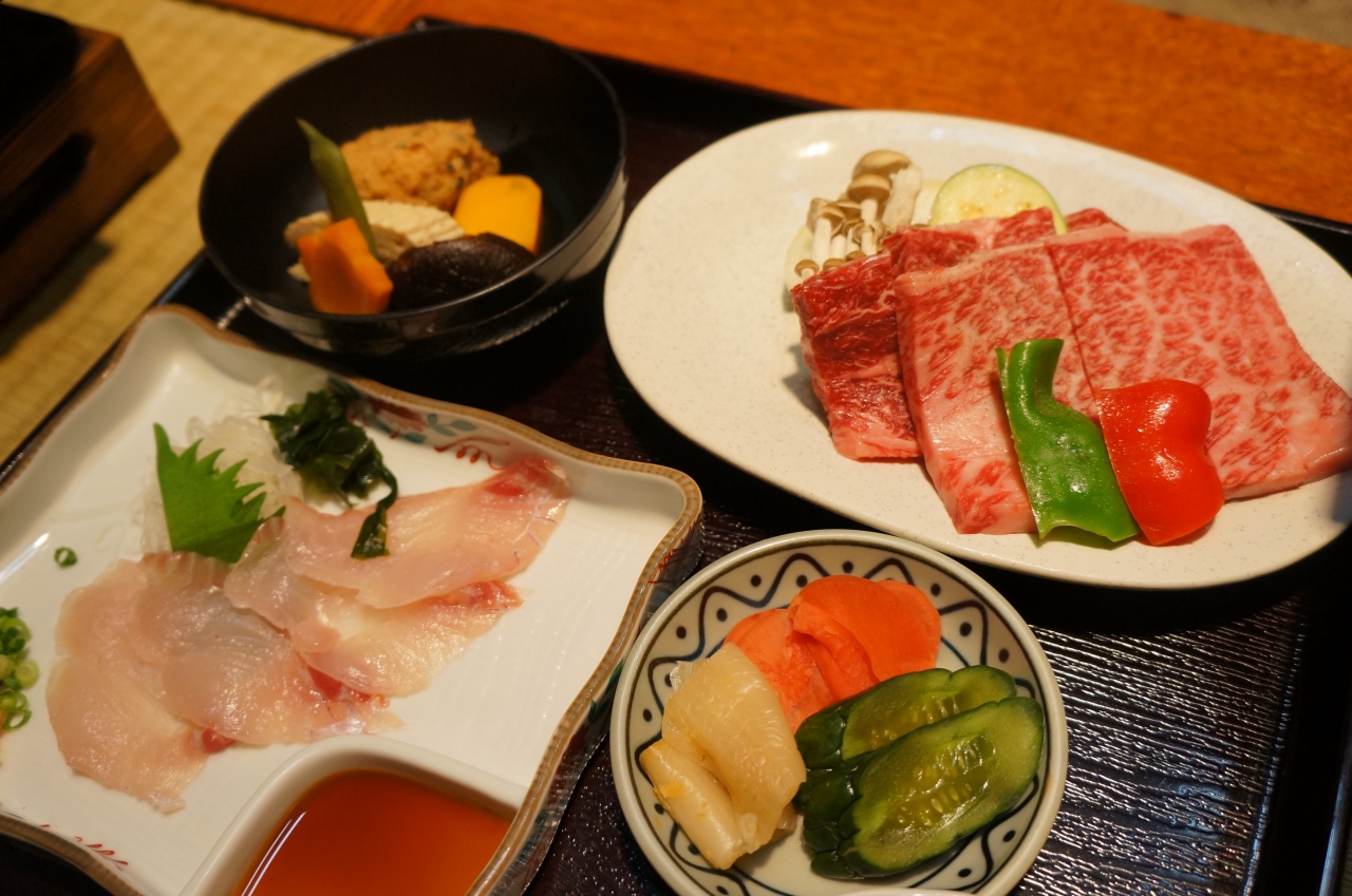 飛騨牛が柔らかくて美味しかったです。囲炉裏の部屋での食事も雰囲気があって♪