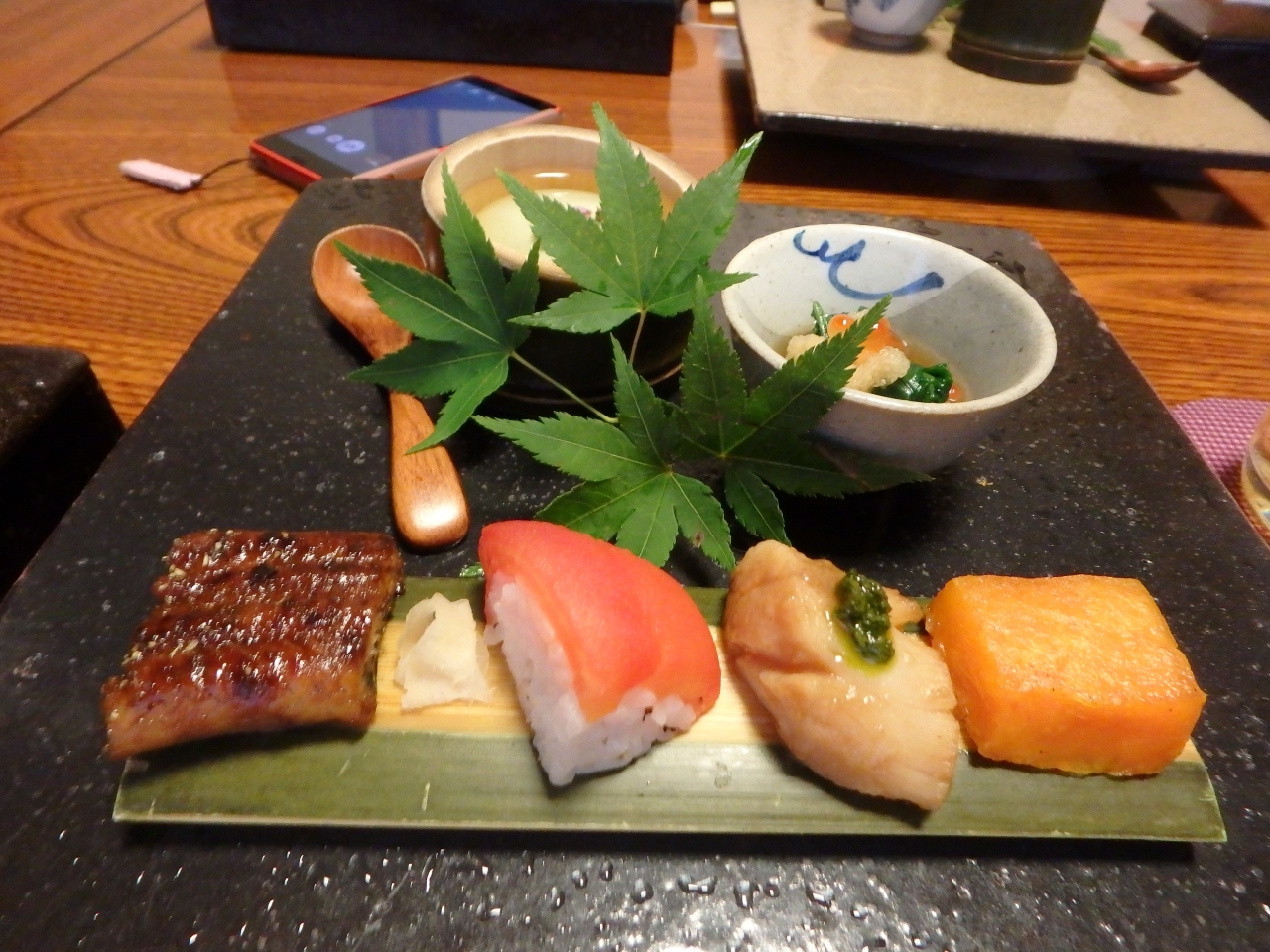 朝食は朝食会場で、夕食ほどのインパクトは無いものの、ふつうの旅館で食べるような平凡なものはありませんでした。でも朝は普通でよかったかな。