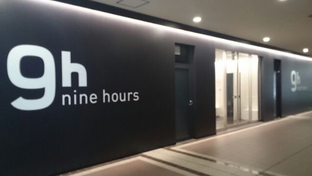 9h(ナインアワーズ)は成田国際空港の第2旅客ターミナルに直結したカプセルホテルです。第2ターミナルで地下1階に降り、地下鉄の駅を右手に見ながらまっすぐ進むと突き当りにエスカレーターがあり、そのエスカレーターで上がったところにありました。