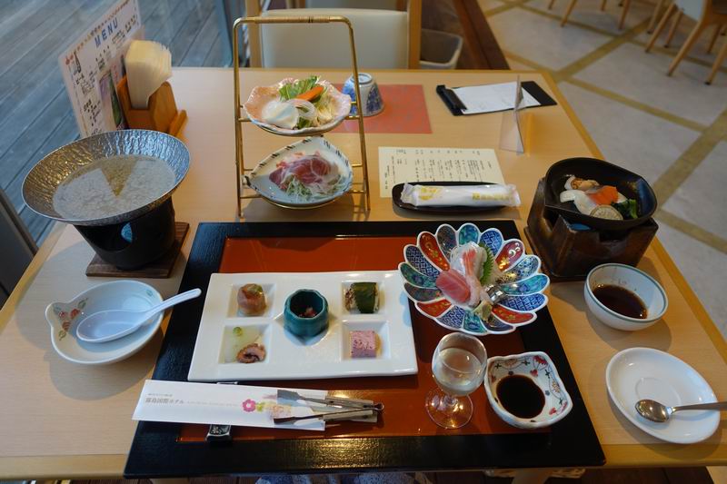 夕食はレストラン「姫沙羅」にて会席料理、朝食は「赤松」にてビュッフェというプランでした。夕食は薩摩黒豚の鍋、さつま汁など地域の特色も感じられる内容で、味もおいしかったです。席に着いた時点では料理はテーブルにそれほど並んでおらず、後から温かい状態(デザートは冷たい状態)で持ってきてくれました。朝食ビュッフェはあまり特長もなく普通でした。