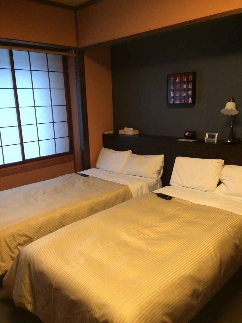 広島に台風が通過した日でしたが、フェリーが夕方に動きました。以前は宮島口に泊まりました。でも厳島神社を堪能したいなら宮島に渡った方が断然いいです。朝の早い時間は人が少なく、厳島神社をのんびり写真撮影できます。宿は新幹線とセットの安いプランだったためか山側の部屋でした。ベットはリクライニングできるし、部屋の広さは申し分ありません。大人の休日という部屋だと部屋から鳥居が見れるし、部屋がかなり広いです。一晩中鳥居を眺めていたいならば、それもいいかもしれませんが、夜散歩しても楽しめます。山側の部屋は一階のレストランで食事になります。席に着く前から刺身がテーブルにセットされていたのは残念でしたが、以前宿泊した宮島口のホテルより美味しかったです。温泉は、消毒臭く残念でしたが綺麗でした。宮島で泊まるならお勧めしたい宿です。