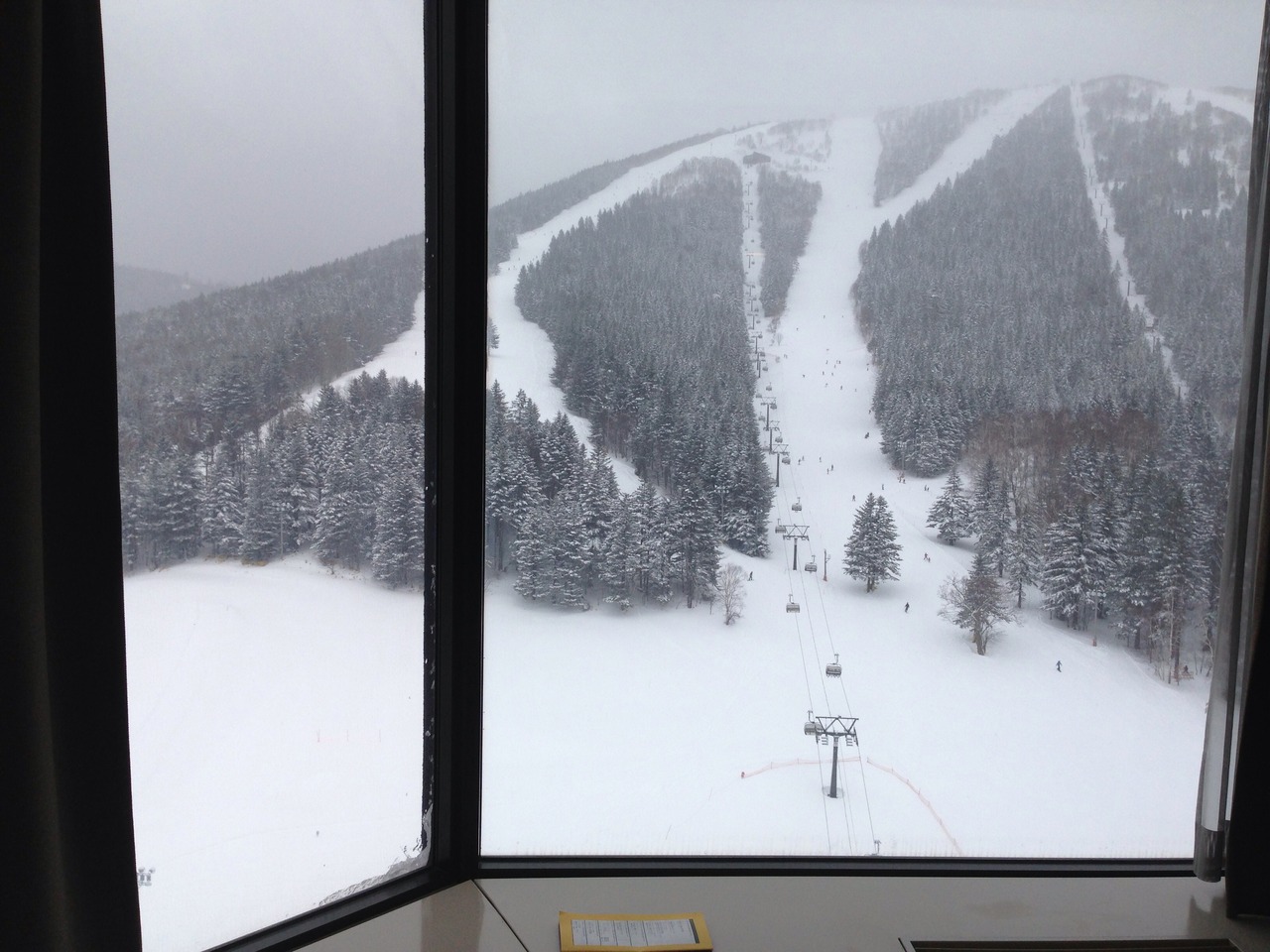 ホテルの部屋から雪景色のスキー場が見えて別世界にいるようでいつまでもぼぉ~っと見惚れてしまいます。