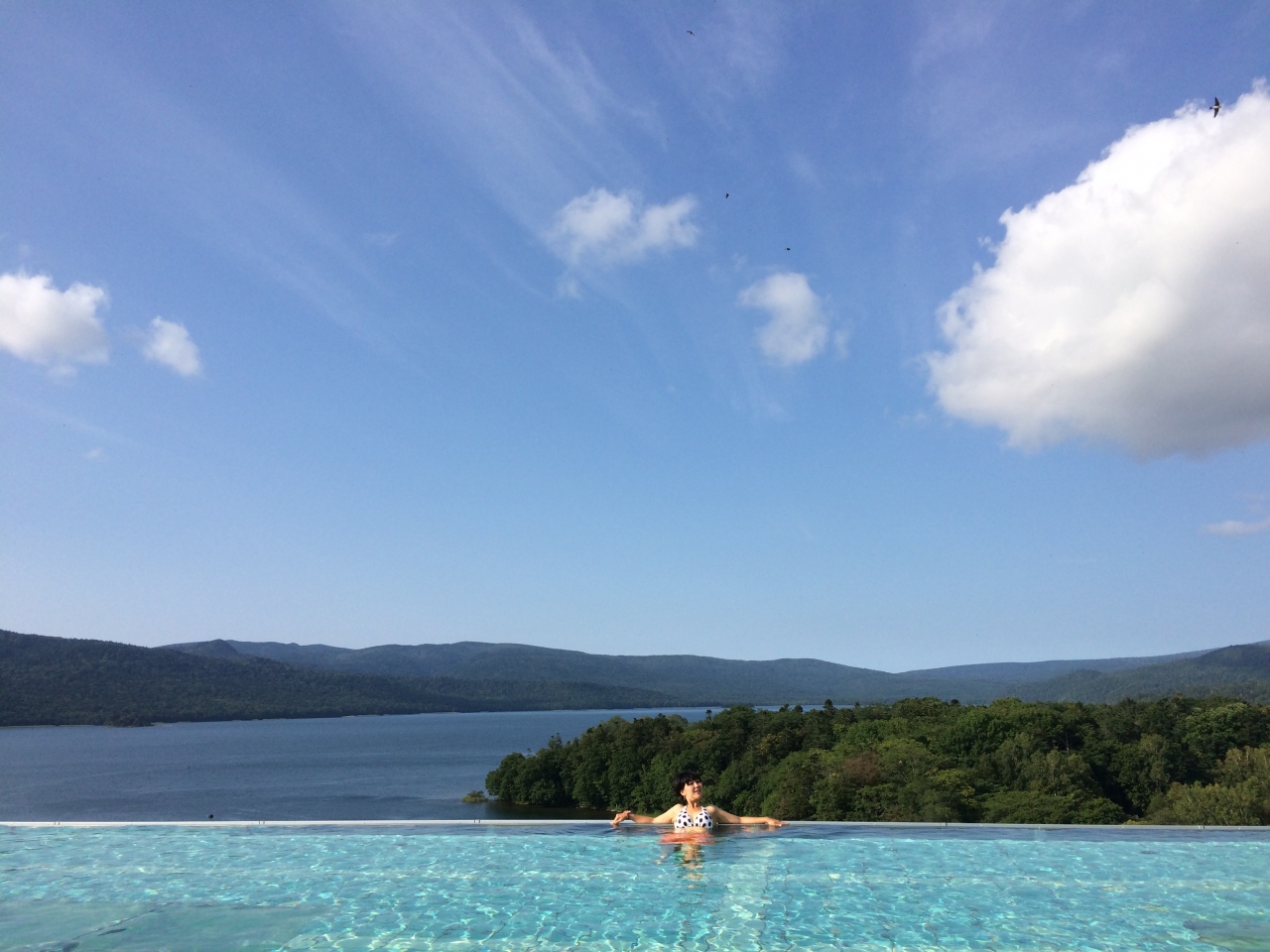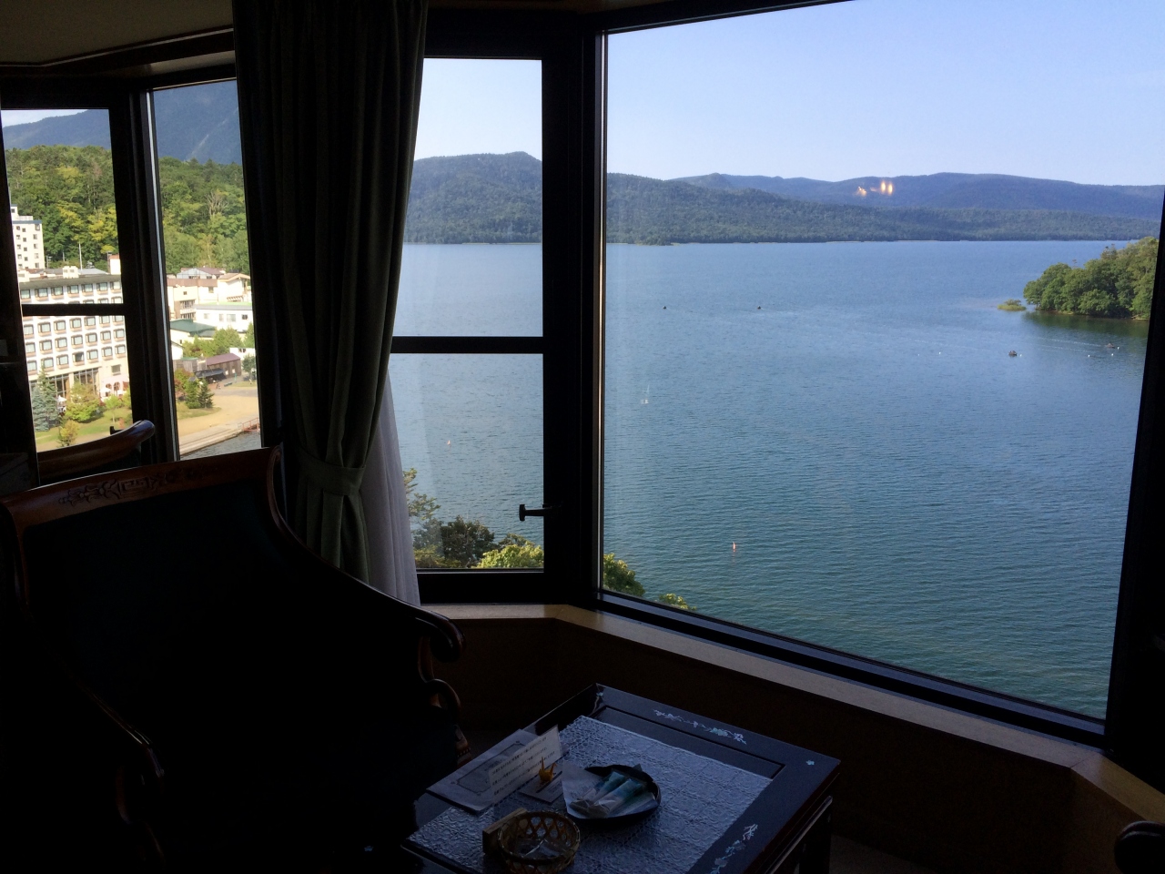 日中は阿寒湖を見渡し、雄阿寒岳がそびえたつ絶景をながめ