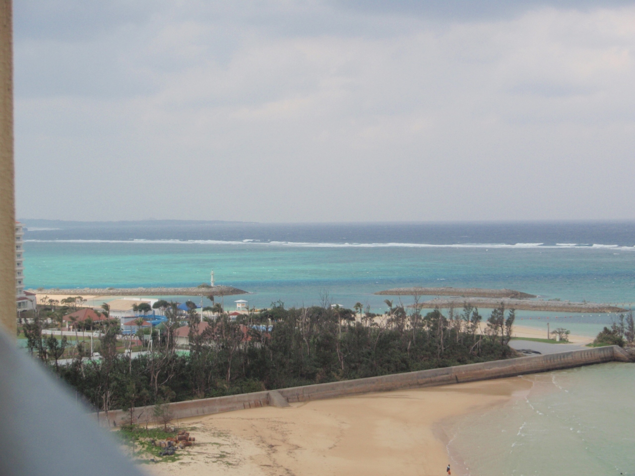 駐車場も広いが、フロント・ロビー周りも広い!さらにお土産店やゲームコーナーレストランなど目白押し。ホテル内を探検しても飽きないかと思わせるほどの広大さ。逆に迷ってしまうかもしれない。客室は、海側・山側あるようだが、「海側」オーシャンビューがおススメ!この海の色を見て沖縄はナンボでしょう!よって、天候にも左右されるホテルの印象だと思った。(こればかりは、どうしようもないのだけれど・・・)夜には、琉球舞踊ショーがロビー周りで催され、みんなで一緒に輪になって踊ったことが良い思い出となっている。朝食も沖縄らしいおかずが並んでいて、喜ばれると思う。