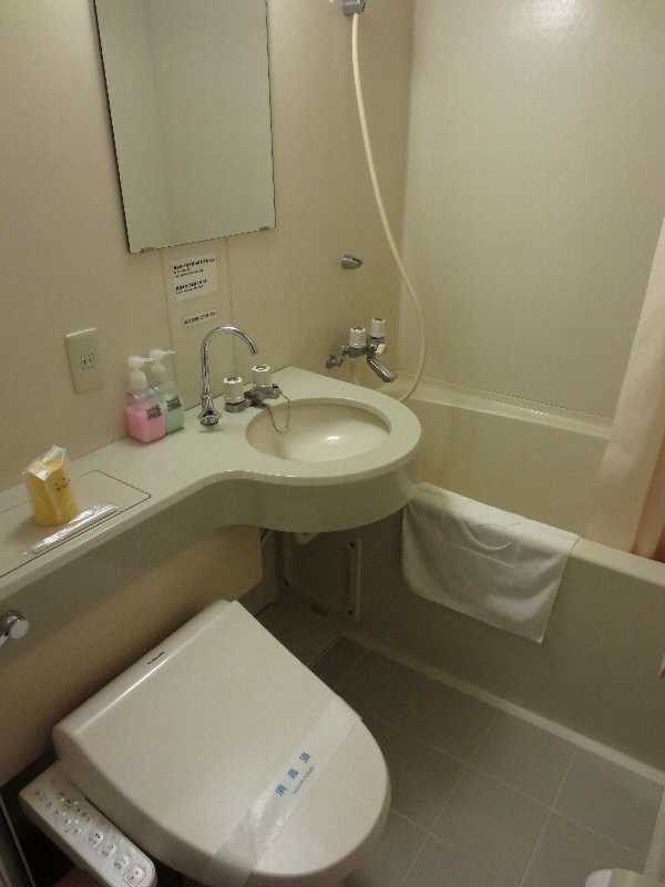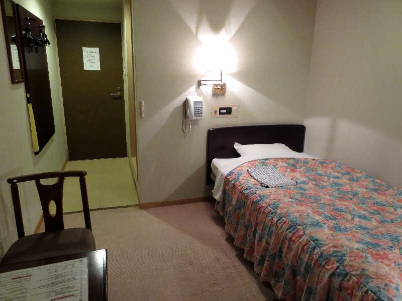 私は2015年のお盆中に3泊で2回泊まり、どちらも4階のシングル部屋に泊まりました。4階は西側(表側)に4部屋、東側(裏側)に5部屋の、計9部屋が配置されていますが、配置の都合で東側の部屋の方が若干狭いです。それでも、西側の部屋でも格安ビジホとしては普通の広さです。ユニットバスも格安ビジホとしては大きめです。