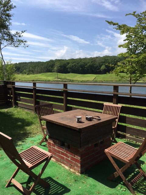 テラスには組み立て式のハンモックや、広げて使うタイプのラウンジチェアも置いてあり、連泊していたら、きっと大半の時間をお庭で過ごしていたことでしょう。午前中、BBQコンロを兼ねたテーブルでお茶をしましたが、椅子に座ってもフェンス越しに湖と何一つ遮るもののない広い空を見上げることが出来、開放感溢れるブランチとなりました。