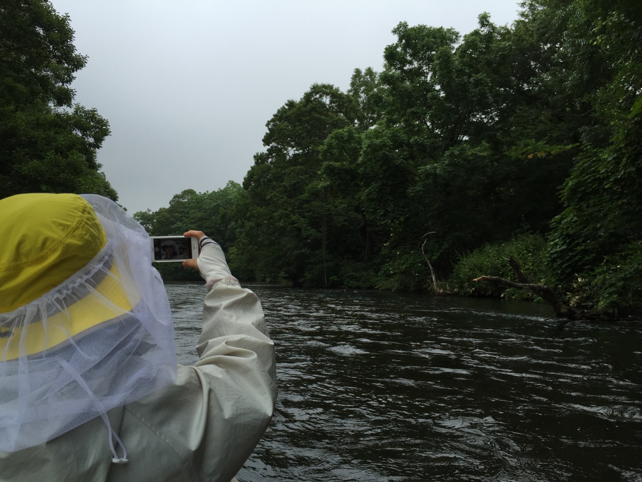 早朝の釧路川は、とても静かです。静かな中をカヌーが音もなく下って行きます。