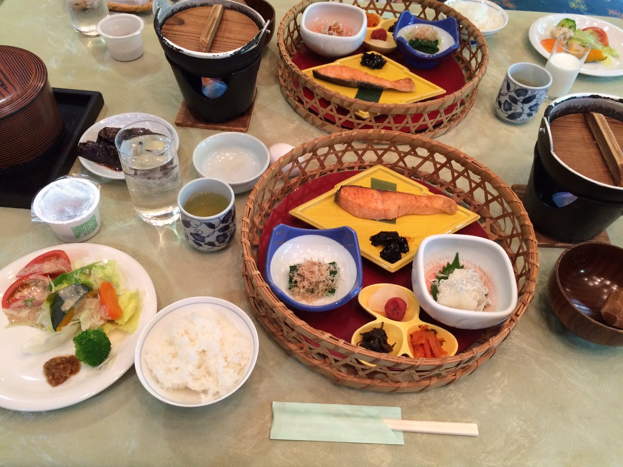 食事 夜も朝も美味しい。ほっとするし食べ過ぎるし、大変です。