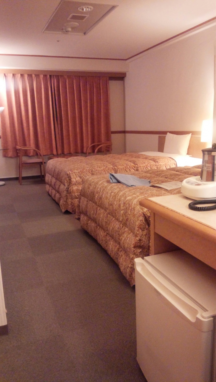 シングルで泊まりましたが、運よく角部屋だったため、20平米くらいありそうな広いツインルームでした。東横インでも広い部屋はあるのですね。